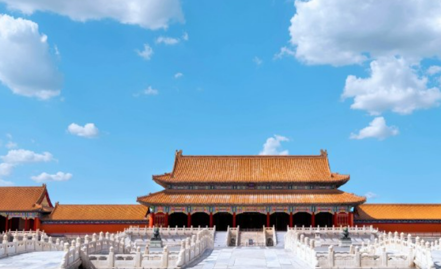 北京故宫明成祖永乐四年(1406年)开始建设,以南京故宫为蓝本营建,到永乐十八年(1420年)建成。它是一座长方形城池,南北长961米,东西宽753米,四面围有高10米的城墙,城外有宽52米的护城河。紫禁城内的建筑分为外朝和内廷两部分。外朝的中心为太和殿、中和殿、保和殿,统称三大殿,是国家举行大典礼的地方。内廷的中心是乾清宫、交泰殿、坤宁宫,统称后三宫,是皇帝和皇后居住的正宫。