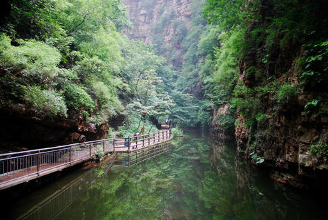 一叫惊潭,即山谷两侧均为绝壁,游人需走峭壁上的栈道才可前进,十分刺激惊人。