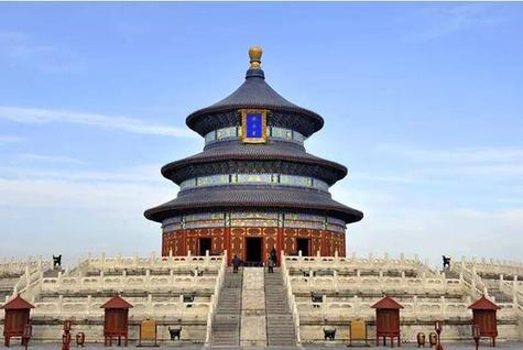 天坛是进行祭天礼仪的地方。天坛在故宫东南方,占地273公顷。比故宫大4倍,是明、清朝两代帝王冬至日时祭皇天上帝和正月上辛日行祈谷礼的地方。天坛是圜丘、祈谷两坛的总称,有坛墙两重,形成内外坛,坛墙南方北圆,象征天圆地方。
