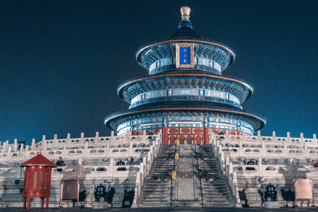 天坛位于北京市南部,东城区永定门内大街东侧。为明、清两代帝王祭祀皇天、祈五谷丰登之场所。天坛是圜丘、祈谷两坛的总称,有坛墙两重,形成内外坛,坛墙南方北圆,象征天圆地方。主要建筑在内坛,圜丘坛在南、祈谷坛在北,二坛同在一条南北轴线上,中间有墙相隔。圜丘坛内有圜丘坛、皇穹宇等等,祈谷坛有祈年殿、皇乾殿、祈年门等。