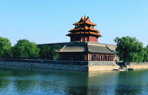 北京故宫于明成祖永乐四年(1406年)开始建设,以南京故宫为蓝本营建,到永乐十八年(1420年)建成。它是一座长方形城池,南北长961米,东西宽753米,四面围有高10米的城墙,城外有宽52米的护城河。紫禁城内的建筑分为外朝和内廷两部分。