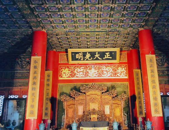 乾清宫正殿宝座上方悬着由清朝顺治皇帝御笔亲书的“正大光明”匾,这个匾的背后藏有密建皇储的“建储匣”。在当时,皇子之间夺取皇位的明争暗斗相当激烈。为了缓和这种矛盾,自雍正朝开始采取秘密建储的办法,即皇帝生前不公开立皇太子,而秘密写出所选皇位继承人的文书,一份放在皇帝身边;一份封在“建储匣”内,放到“正大光明”匾的背后。皇帝死后,由顾命大臣共同取下“建储匣”,和皇帝秘藏在身边的一份对照验看,经核实后宣布皇位的继承人。