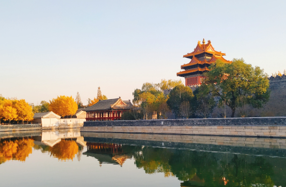 在紫禁城中,共有四城门,南面的午门,还有东华门,西华门和北面的神武门,整个宫城呈长方形,占地72万平方米,有大小宫殿70多座,房屋9000多间.周围环绕着10多米高的城墙和50多米宽的护城河.城墙的四角上,各有一个玲 珑奇巧的角楼.这些玲珑多姿,绚丽多彩的角楼,为明代建筑,至今已有560多年的历史.角楼的平面布局为两个”十”字相叠的曲尺形,四周环绕白玉石柱杆基座.重檐为面体型多角交错,上层檐由四角攒尖顶和歇山顶组成.四面亮山,正脊纵横十字交叉,中安铜鎏宝顶.角楼设计比例和谐,处理得非常巧妙,大小结构复杂精密,别出心裁。
