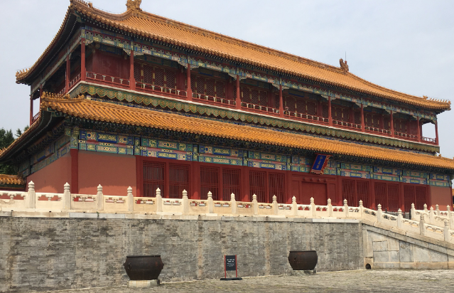 紫禁城宫殿是沿着一条南北向中轴线排列,三大殿、后三宫、御花园都位于这条中轴线上。并向两旁展开,南北取直,左右对称。这条中轴线不仅贯穿在紫禁城内,而且南达永定门,北到鼓楼、钟楼,贯穿了整个城市。