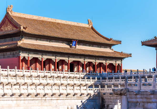 故宫前部宫殿,当时建筑造型要求宏伟壮丽,庭院明朗开阔,象征封建政权至高无上,太和殿坐落在紫禁城对角线的中心,四角上各有十只吉祥瑞兽。故宫的设计者认为这样以显示皇帝的威严,震慑天下。后部内廷却要求深邃、紧凑,因此东西六宫都自成一体,各有宫门宫墙,相对排列,秩序井然。内廷之后是宫后苑。