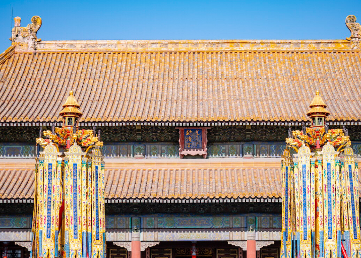 故宫前部宫殿,当时建筑造型要求宏伟壮丽,庭院明朗开阔,象征封建政权至高无上,太和殿坐落在紫禁城对角线的中心,四角上各有十只吉祥瑞兽。故宫的设计者认为这样以显示皇帝的威严,震慑天下。后部内廷却要求深邃、紧凑,因此东西六宫都自成一体,各有宫门宫墙,相对排列,秩序井然。