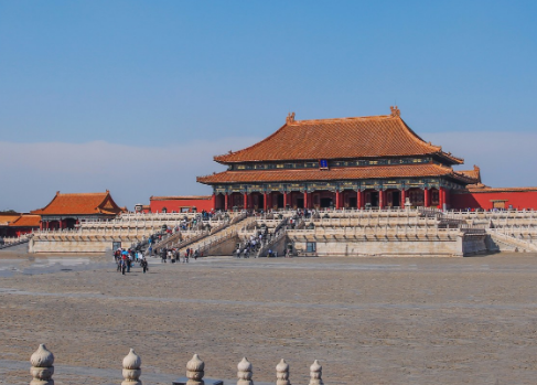 北京故宫于明成祖永乐四年(1406年)开始建设,以南京故宫为蓝本营建,到永乐十八年(1420年)建成。它是一座长方形城池,南北长961米,东西宽753米,四面围有高10米的城墙,城外有宽52米的护城河。紫禁城内的建筑分为外朝和内廷两部分。外朝的中心为太和殿、中和殿、保和殿,统称三大殿,是国家举行大典礼的地方。内廷的中心是乾清宫、交泰殿、坤宁宫,统称后三宫,是皇帝和皇后居住的正宫。