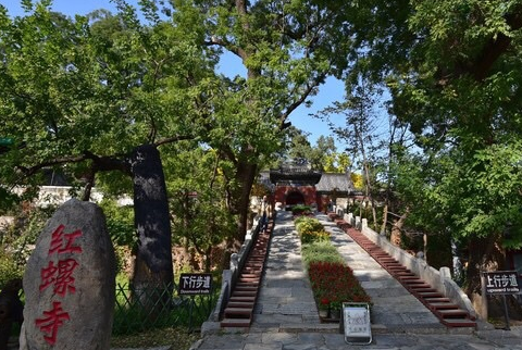 红螺寺旅游区环境幽雅,古木参天,经年常青,四季花香,人文景观与自然景观竞秀。紫藤寄松、御竹林、雌雄银杏号称三绝景。