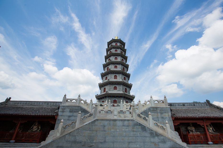 圆通塔位于古北水镇“主一路”旁山顶处,圆通塔寺由观音院和圆通塔两大建筑群组成,其中观音院又分为山门、天王殿、大士殿和毗卢遮那佛殿等殿堂群构成,圆通塔平面八角形,塔高七层,地宫两层。可为来此旅游禅修的宾客和居士提供斋房、斋饭、抄佛经、品佛茶的场景式体验。