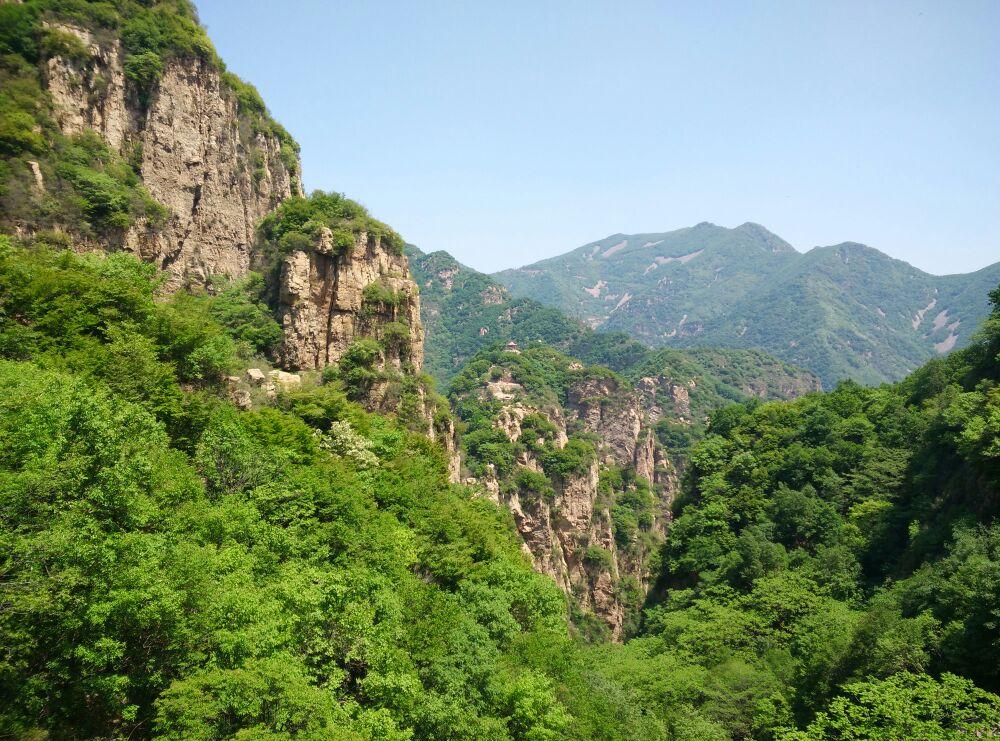 景区中的翠屏峰、莲花峰、四姑娘山、玉屏山、拔地而起,直入云霄,既有北方山峰雄伟壮观之势,亦有南方山川秀丽险峻之韵。徒步或乘坐索道登上主峰莲花峰,向南可观神奇的石海似中华地图:向北千沟万壑尽收眼底,不由的感叹悬崖峭壁之上栈道的惊险:西望雄壮的古长城与烽火台蜿蜒在老虎岭上:东望群山,“会当凌绝顶,一览众山小”。