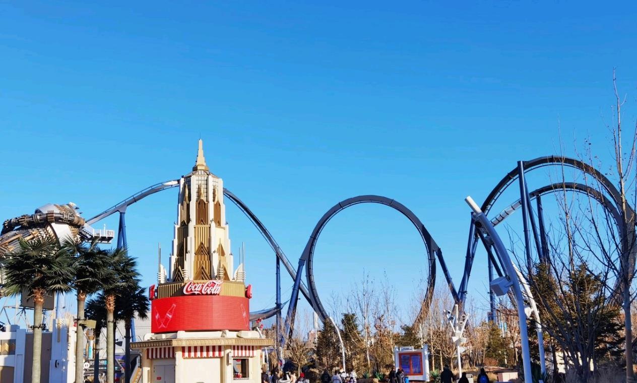 过山车全程大概是这样一个线路:在天上360°旋转2~3次,再俯冲、急速下降,体验悬空、失重,以及空气把脸吹到变形的感觉。