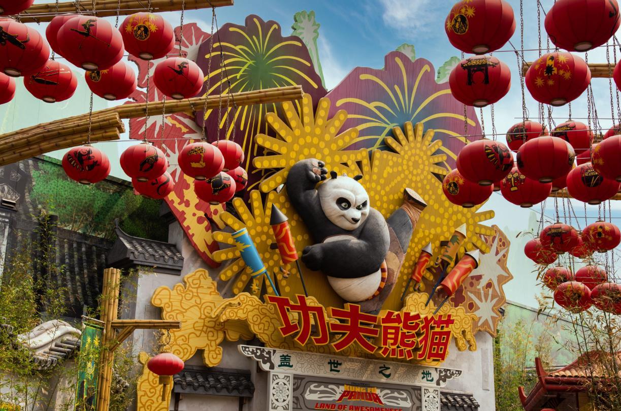和魔幻刺激的哈利·波特、变形金刚相比,功夫熊猫园区仿佛“别有洞天”,动画里的翡翠宫、熊猫村、平先生面馆等都在这里得到了还原,中式灯笼、飞檐屋顶随处可见,还有和平山谷、智慧仙桃树,沉浸感超强!这里也是休闲、吃饭、放松的好地方。