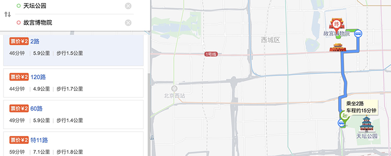 天坛位于故宫东南方的北京南城,占地273公顷,是故宫的4倍大。故宫距离天坛仅4公里,有多趟公交直达,也可以步行或骑车前往。打车费用在20-30元不等。