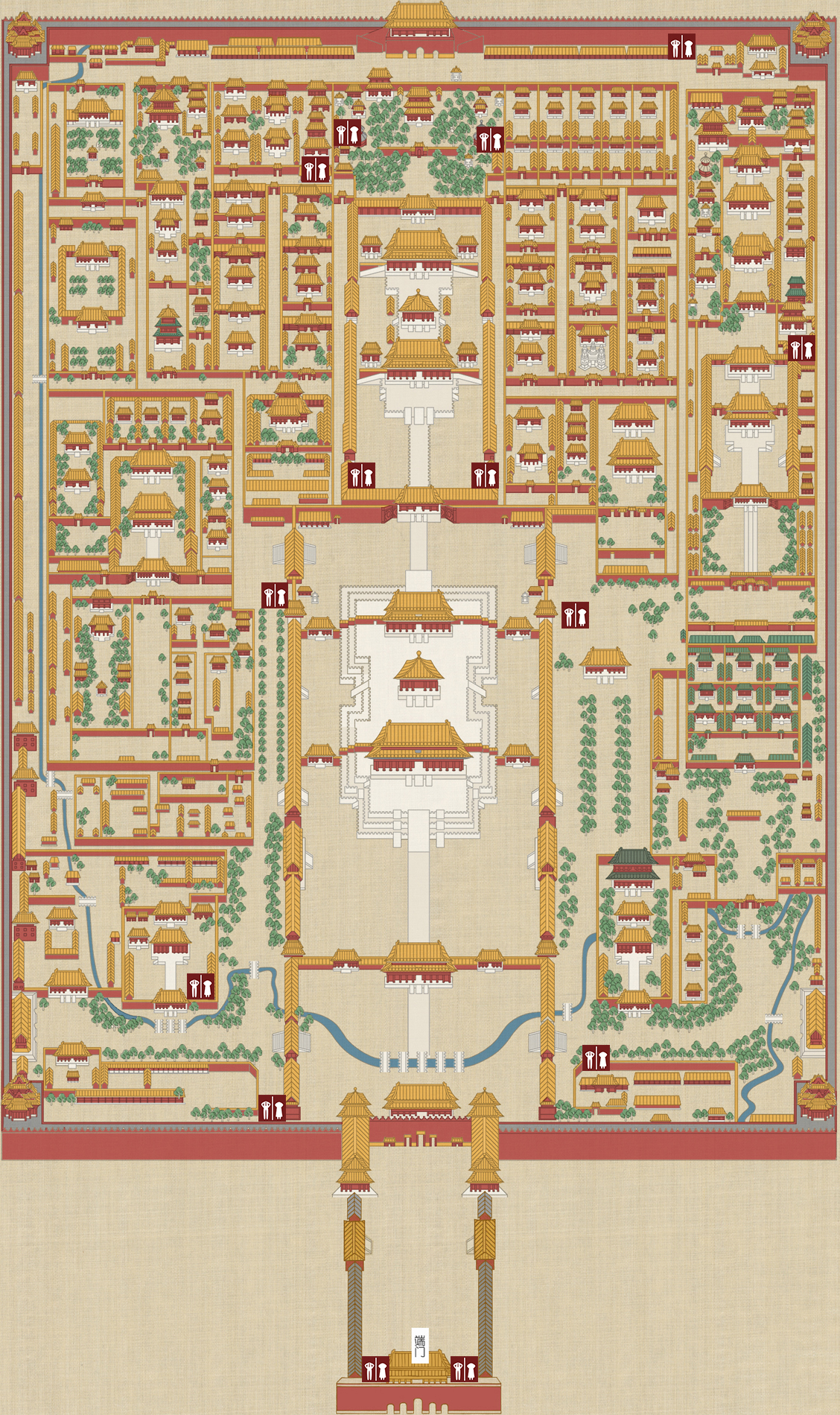 午门,故宫博物院的南门,自2011年7月2日始只作为观众参观入口。故宫参观都是从这里进入。