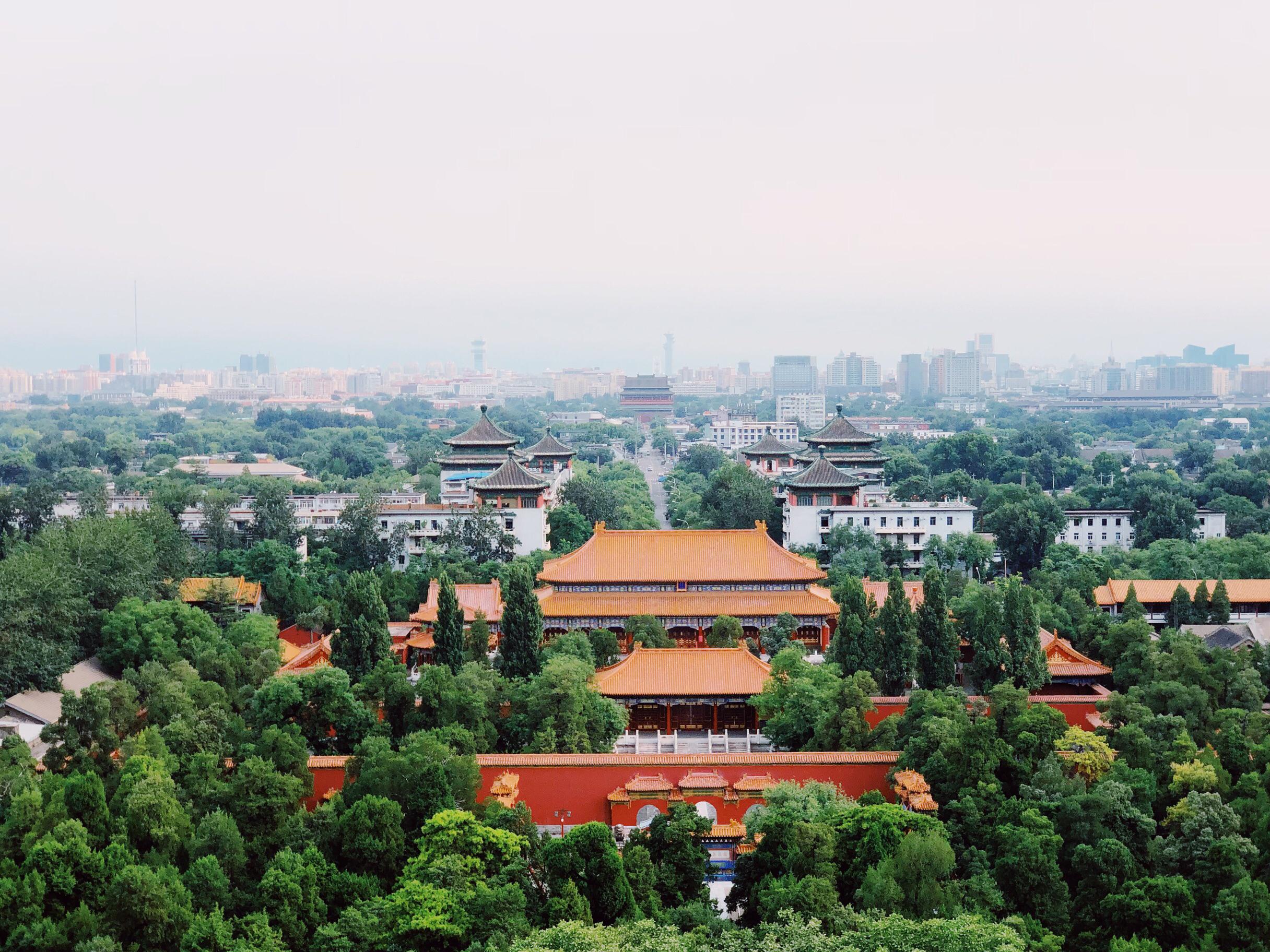 一、景山公园景山公园位于北京市西城区景山前街,坐落在明清北京城的中轴线上,西临北海,南与故宫神武门隔街相望,是明、清两代的御苑。公园中心的景山为堆土而成,曾是全城的制高点。