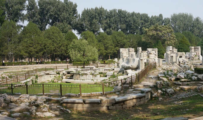圆明园占地面积3.5平方千米,规模宏伟,有一百五十余景,融会了各式园林风格,有“万园之园”之称,被誉为“一切造园艺术的典范”。1860年,圆明园在英法联军之役中被英法侵略者洗劫破坏后放火焚毁,历经战乱劫掠,现时仅存遗址,被列入全国重点文物保护单位。