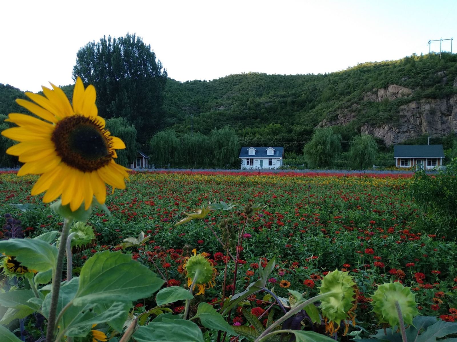 走进景区,环顾四周,豁然开朗,山上郁郁葱葱、青翠欲滴;山下花团锦簇,色彩斑斓。想不到在群山环抱中竟有这么大面积的一片平坦之地。源自雾灵山的安达木河流水清澈地穿流而过,形成了这里清山为体、碧水为魂、花海如烟的人间美景。
