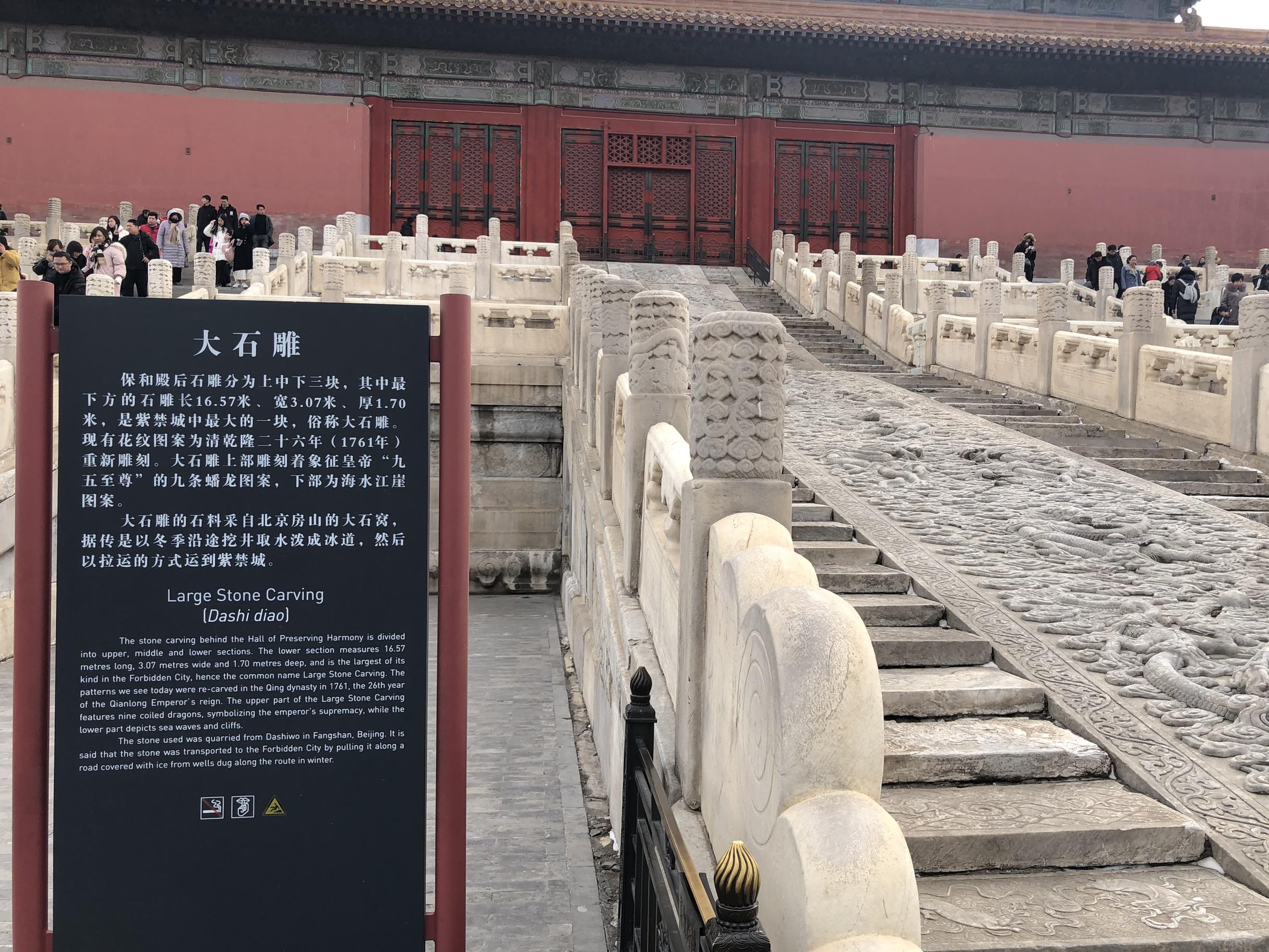 位于太和殿与保和殿之间,始建于明永乐十八年,初称华盖殿;嘉靖年间遭遇火灾,重修后改称中极殿,现天花内构件上仍遗留有明代“中极殿”墨迹;清顺治二年改为中和殿,取《礼记·中庸》所载的:“中也者,天下之本也;和也者,天下之道也”之意。中和殿高19米,平面呈方形,为单檐四角攒尖,屋面覆黄色琉璃瓦,中为铜胎鎏金宝顶,殿内匾额“允执厥中”,为乾隆御笔。皇帝也要到中和殿阅读拟好的奏折,同时要举行隆重的存放仪式。有时候皇帝也会在这里召见官员或赐保和殿位于中和殿后,同样建成于明永乐十八年,内外檐均为金龙和玺彩画,天花为沥粉贴金正面龙。六架天花梁彩画极其别致,与偏重丹红色的装修和陈设搭配协调,显得华贵富丽。殿内匾额“皇建有极”,为乾隆御笔。