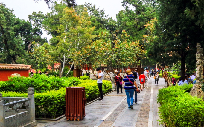 三、御花园御花园内主体建筑钦安殿为重檐盝顶式,坐落于紫禁城的南北中轴线上,以其为中心,向前方及两侧铺展亭台楼阁。园内青翠的松、柏、竹间点缀着山石,形成四季长青的园林景观。