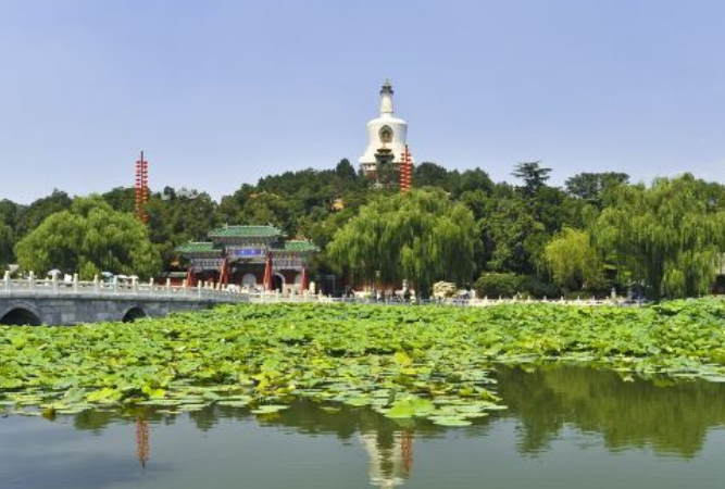 琼岛春阴在北海白塔山东、倚晴楼南。"燕京八景"之一。始建于金代,金末道士丘处机在《琼华岛七言诗》中赞道:“苍山突兀倚天孤,翠柏阴森绕殿扶,元代以北海为中心,建起大都城,将琼华岛改名万寿山,明代,改琼岛春阴为琼岛春云。