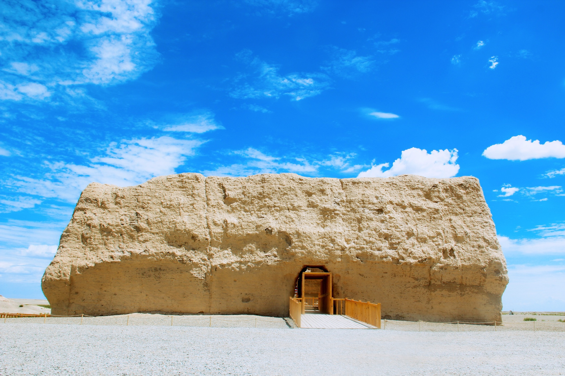 玉门关,俗称小方盘城,始建于汉武帝开通西域道路、设置河西四郡之时。现存关城呈方形,四周城垣保存完好,为黄胶土夯筑,开西北两门。城堡平面呈方形,东西长24米,南北宽26.4米,总面积630多平方米。