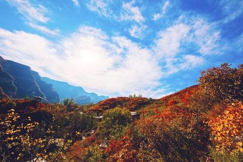 坡峰岭,距离北京市区52km,位于北京市西南房山区周口店镇黄山店村境内西北3km处,毗邻北京宝金山玉虚宫。这里生长着大片的黄栌,一到秋天满山红叶,层林尽染,景色十分迷人,堪比香山。