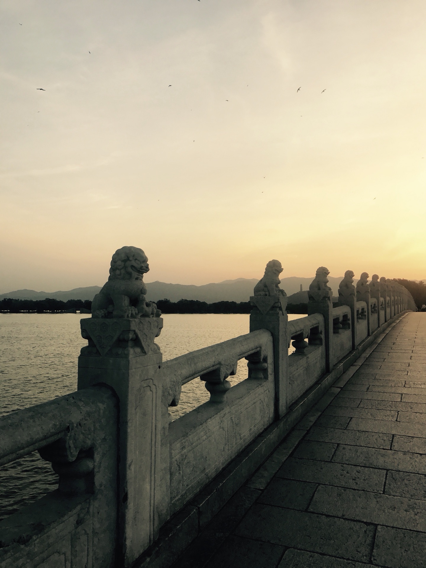 每年冬至前后,落日光辉穿过颐和园十七孔桥,照亮全部十七个桥洞,呈现出壮丽景观,俗称“金光穿洞”。