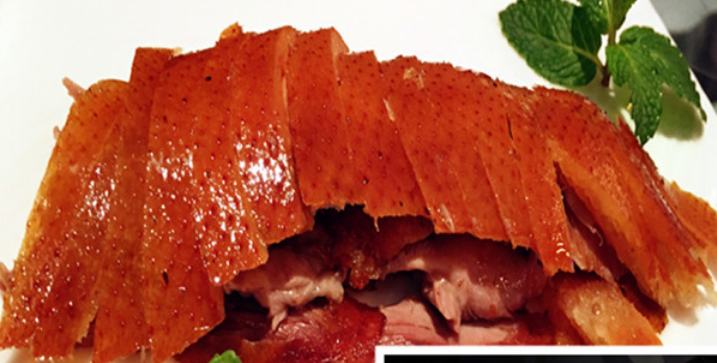 北京烤鸭是具有世界声誉的北京著名菜式,起源于中国南北朝时期,《食珍录》中已记有炙鸭,在当时是宫廷食品。用料为优质肉食鸭北京鸭,果木炭火烤制,色泽红润,肉质肥而不腻,外脆里嫩。