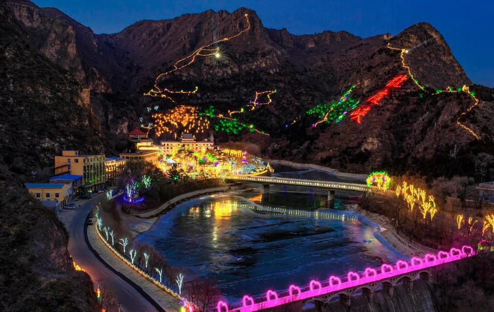 龙庆峡水库大坝外侧耸立着两座小山,遮住了天空,终年不见阳光。冰河期持续4个月。利用这一独特的自然条件,龙庆峡从1987年开始举办冰灯艺术节,龙庆峡冰灯艺术展成为首都传统的冬季旅游项目。冰灯展区位于古城水库的巨坝之下,两山峡谷之间。两山自然渗水形成的巨大冰柱构成了罕见的冰瀑奇观,成为冰灯展区最好的自然背景。