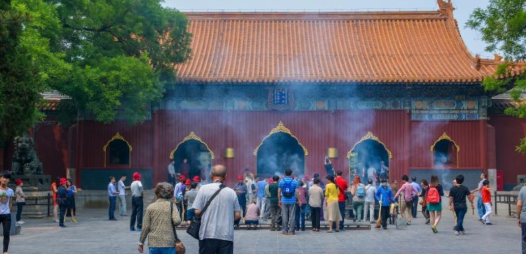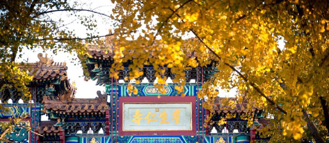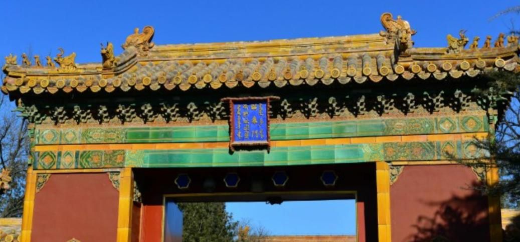 牌楼院位于雍和宫最南部,大门坐东朝西,东、西、北各立一木牌坊,南侧有一黄、绿琉璃砖瓦的影壁。