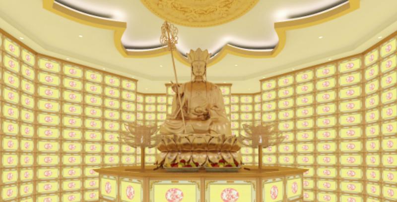 天王殿又称雍和门,殿原为王府的宫门,后改建为天王殿。殿内为井口天花,地铺方砖,供有布袋尊者和四大天王塑像。