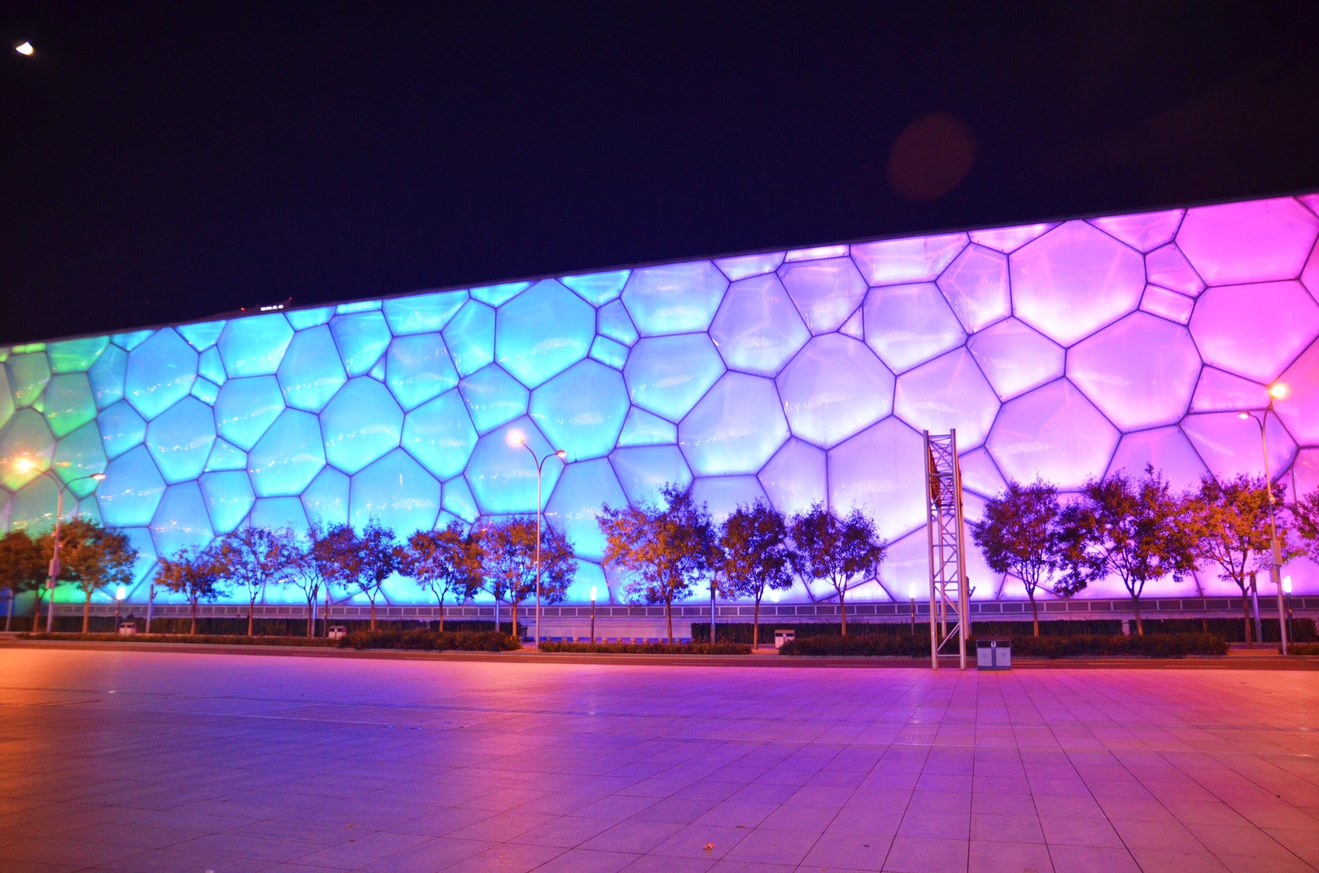 水立方始建于2003年12月24日,于2008年1月正式竣工。2018年8月,承办北京2022年冬奥会冰上项目,改造场馆已经初步形成改造方案。