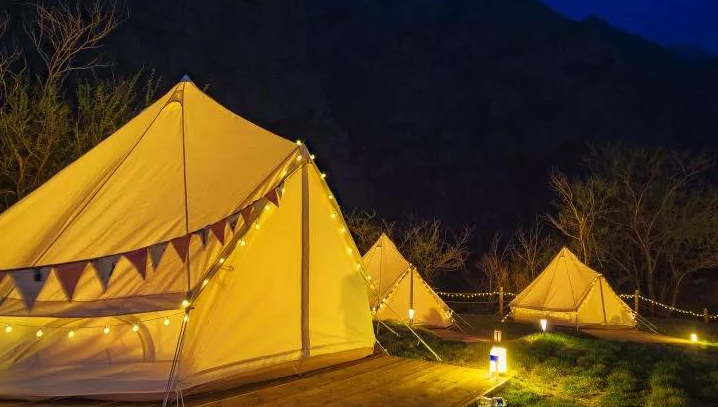 白河湾峡谷露营基地内溪水湍流的风景中扎帐篷最贴近大自然;如果想住帐篷,游客可以自备帐篷或者在这里租用帐篷均可;这种自助或半自助的休闲度假体验能满足不同露营爱好者的需求。