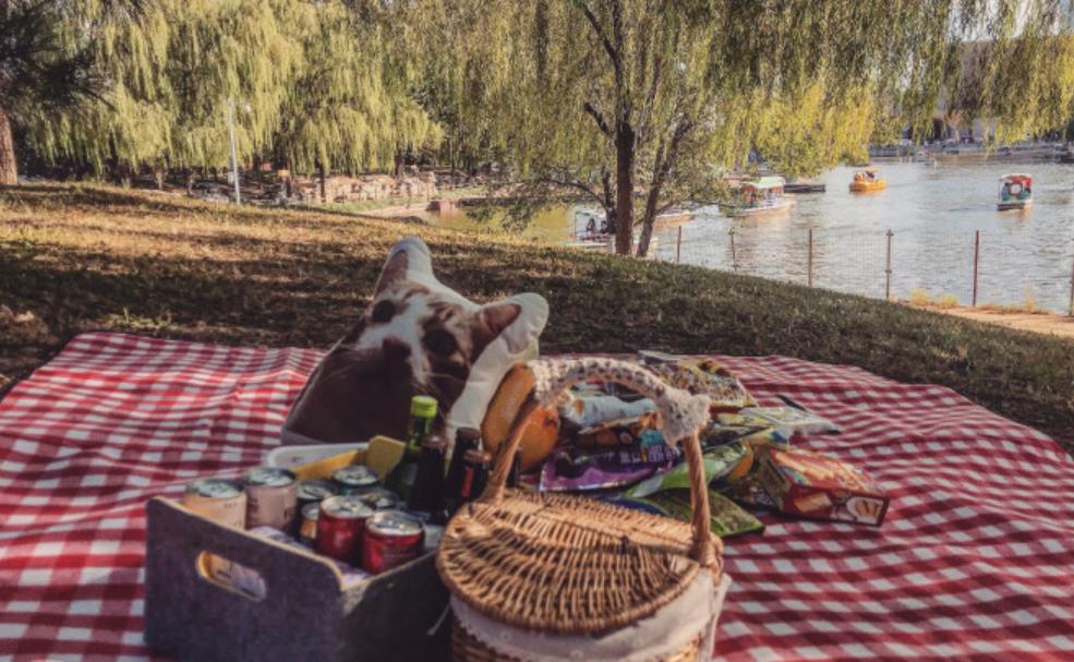 从朝阳公园南门进,走最右手路到下沉广场附近,右手边有两个大草坪,都是可以野餐的地方。但公园不允许有明火,所以是无法烧烤的,只是携带食用冷饮熟食的话,还是可以找到地方安排使用的。