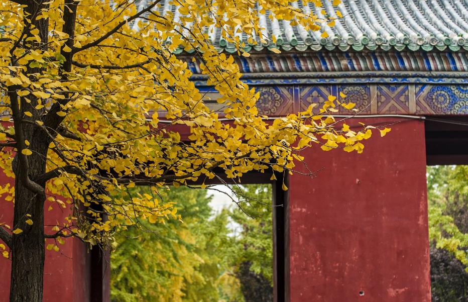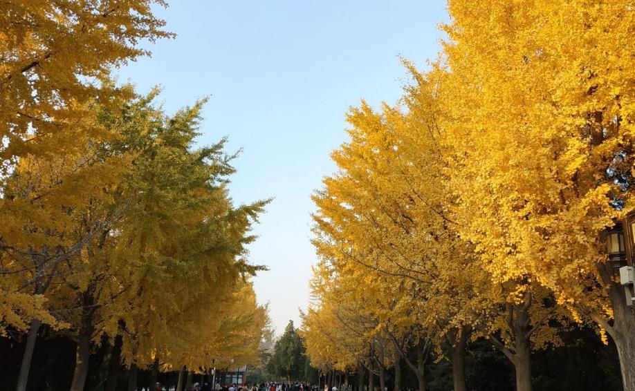 秋天是地坛最美的季节,满园的银杏树金灿灿,较之人满为患的钓鱼台银杏大道,地坛就不那么拥挤了。