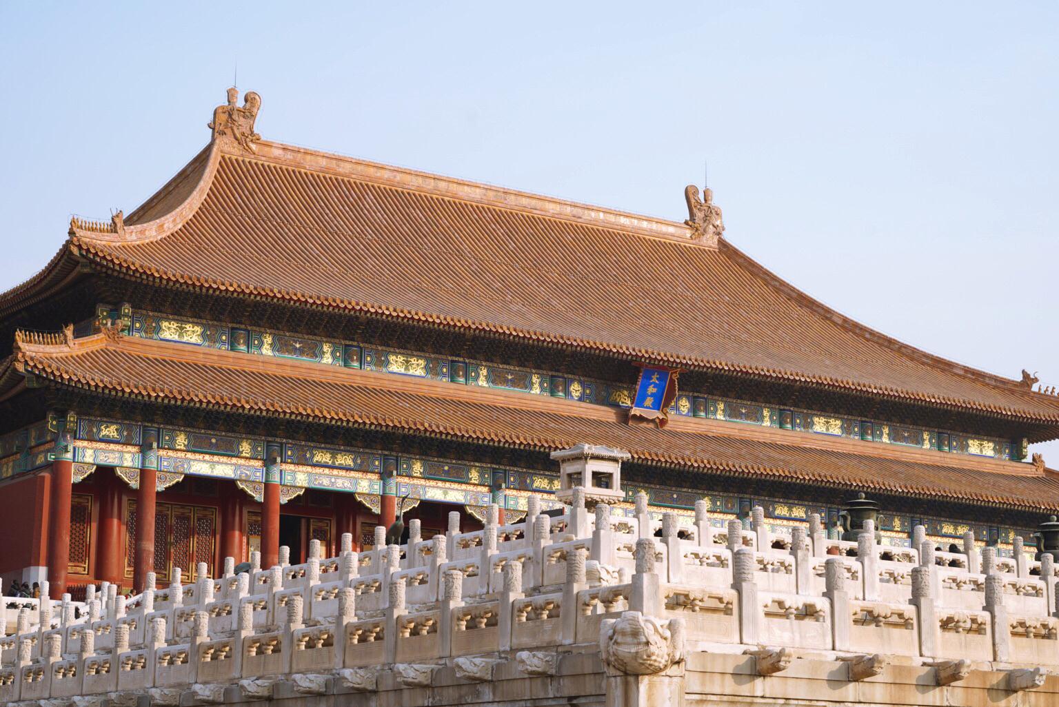 紫禁城内的建筑分为外朝和内廷两部分。外朝的中心为太和殿、中和殿、保和殿,统称三大殿,是国家举行大典礼的地方。内廷的中心是乾清宫、交泰殿、坤宁宫,统称后三宫,是皇帝和皇后居住的正宫。