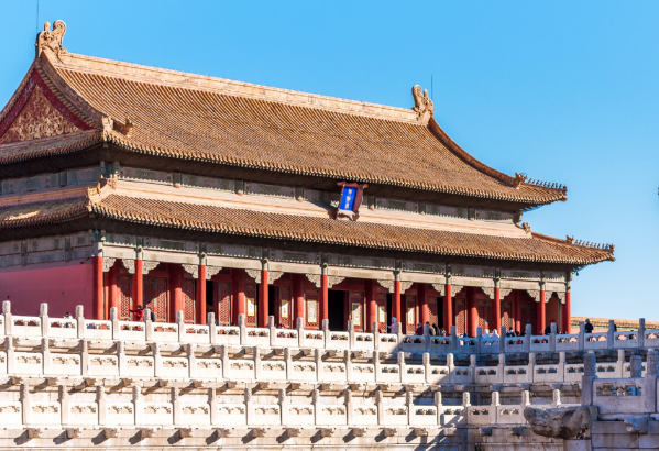 故宫前部宫殿,当时建筑造型要求宏伟壮丽,庭院明朗开阔,象征封建政权至高无上,太和殿坐落在紫禁城对角线的中心,四角上各有十只吉祥瑞兽。