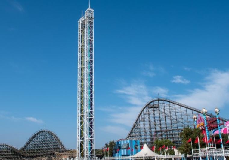 天地双雄是华北唯一的座双塔跳楼机。双塔并立,一个塔的座椅由下而上高速弹射运动,在2秒钟内冲到56米的顶端;另一个由上而下做极速降落运动。