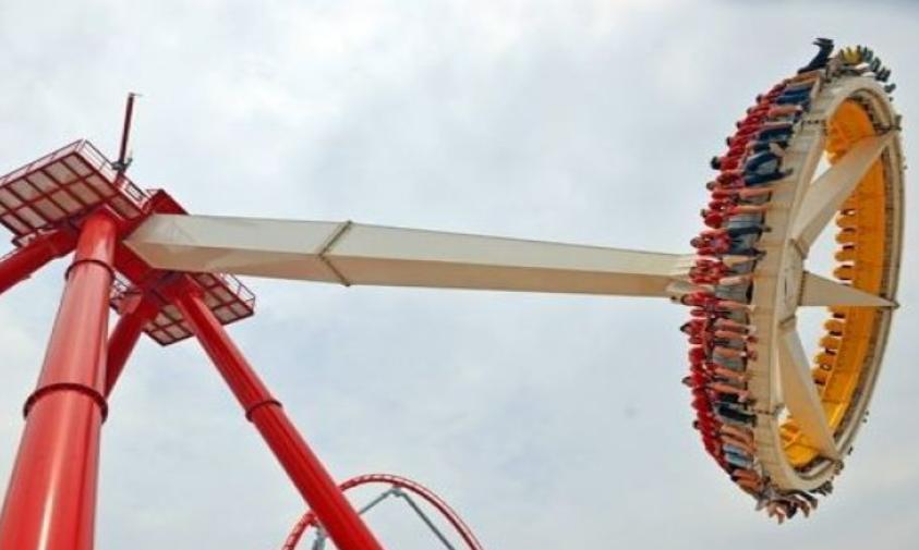 重120吨,一台齿轮电机驱使神车自身旋转。同时,6台大功率的异步驱动电机同时启动,创造4.3G的加速度,瞬时飞跃至15层楼高的高空。