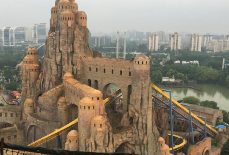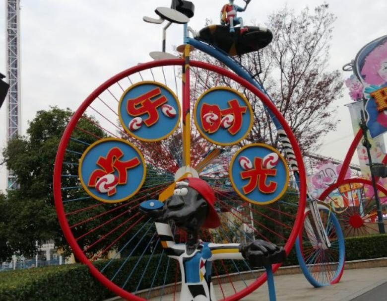 环园小火车在高空轨道上缓缓前行,可以在设备上游览整个乐园,收听各区文化、主要设备的讲解。