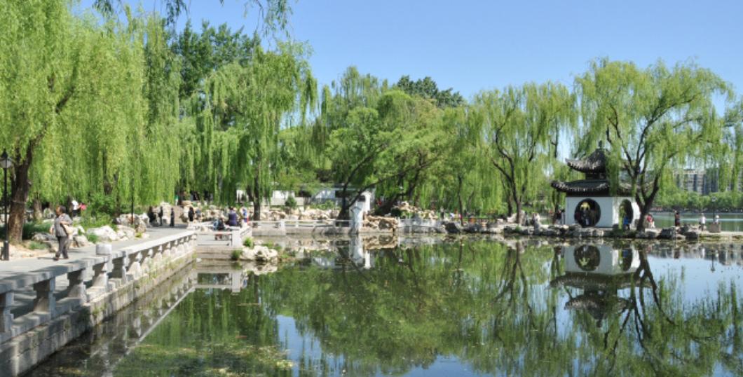北京市区最大的公园之一,园内面积较大,内部有众多景点,是市民们放松漫步的好去处。中间两处大湖分别是东湖和西湖,周围有垂柳树木,远处的电视塔倒影湖中,环境非常优美。