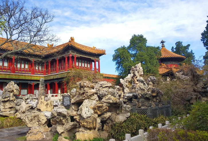 御花园建筑布局对称而不呆板,舒展而不零散;以钦安殿为中心,两边均衡地布置各式建筑近20座;无论是依墙而建还是亭台独立,均玲珑别致,疏密合度。其中以浮碧亭和澄瑞亭、万春亭和千秋亭最具特色。
