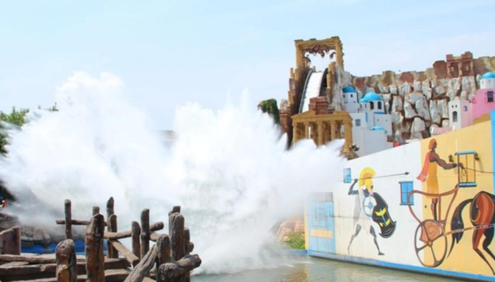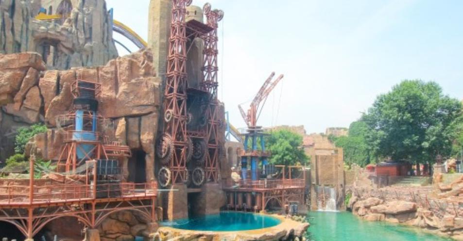 奥德赛之旅:亚洲最高的双提升激流勇进,小船分别在10米和26米的高点,顺势下冲,提升到约74km/h的时速,溅起巨大的水浪,涌动着漂流的小舟。水浪不仅会洒落在刚刚结束探险之旅的小船上,也会溅到港湾观看的人群中。