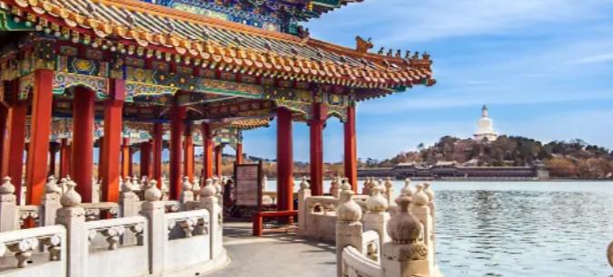 “让我们荡起双桨,小船儿推开波浪…”,耳熟能详的歌中描述的正是这里。北海位于故宫西北侧,与“中海”“南海”合称三海。公园曾是皇家园林,园内亭台错落掩映,湖畔林木郁郁葱葱,风光极美。