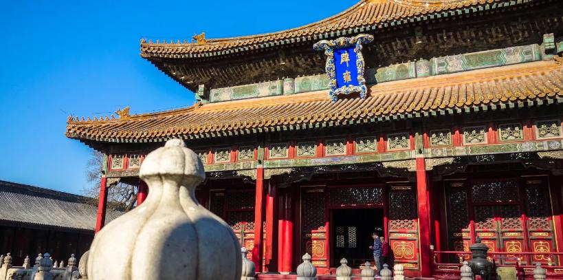 国子监坐落在北京东城区安定门内,是我国现存唯一一所古代中央公办大学建筑。 与孔庙和雍和宫相邻。 国子监街两侧槐荫夹道,大街东西两端和国子监大门两侧牌楼彩绘,是北京仅存的建有四座牌坊的古建街。