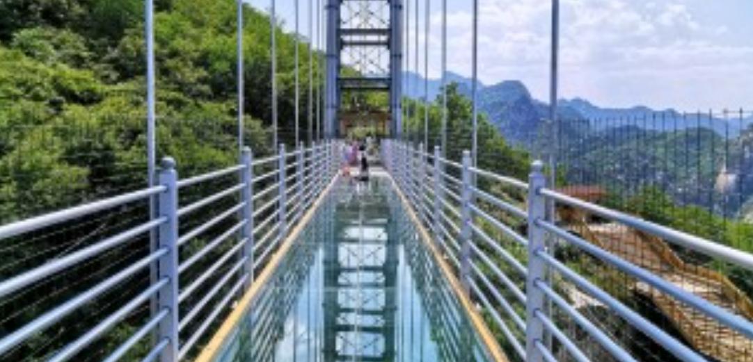 还可以去玻璃栈道,跨越两个山之间中间还有一部分是电子屏幕,有碎玻璃声音的特效,高空玻璃天桥,看景色一览无遗,可以低头看景色和天空近距离接触水晶长城:都是透明的水晶做的,有两个烽火台可以上去拍照。最后去参加一下高山漂流:有两千米长,有衣服可以给换,还有拖鞋可以穿。
