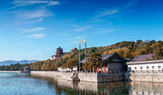 万寿山后山、后湖古木成林,有藏式寺庙,苏州河古买卖街。后湖东端有仿无锡寄畅园而建的谐趣园,小巧玲珑,被称为“园中之园”。
