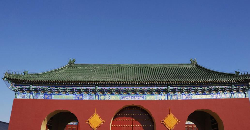 天坛初建是合祀天地的场所,故名天地坛,这从现今天 坛坛墙的形状仍可看出。其坛墙有内外两重,都是南方北 圆,正符合我国古代天圆地方的传统观念。虽然从嘉靖九年改为天地分祀,在北郊另建了地坛,而天坛的围墙并未改动。