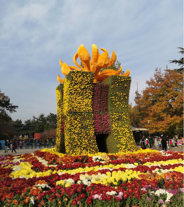 每年菊展期间,众多市民举家走进中山公园感受秋天的气息,老少相携共享天伦的情景,更为菊展增添了一份温馨。中国传统的菊展主要分斗菊和扎菊。斗菊是栽培者带着各自精心培植的菊花参展,通过花色、造型、品种比个高低,其中必然要有“花魁”。用菊花做的造型叫扎菊,与斗菊不同,扎菊欣赏的不是单株菊花,而是看扎制的整体造型。