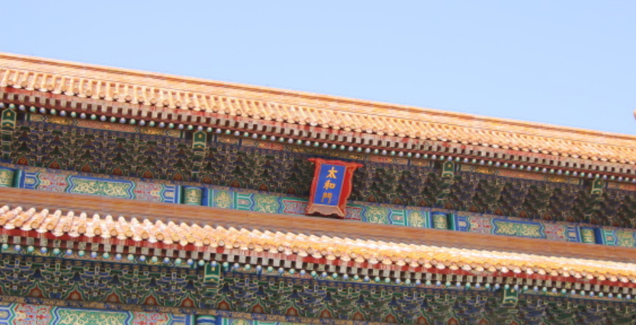太和门面阔9间,进深4间,建筑面积1300.00㎡。上覆重檐歇山顶,下为汉白玉基座,梁枋等构件施以和玺彩画。门前列铜狮一对,铜鼎四只,为明代铸造的陈设铜器。